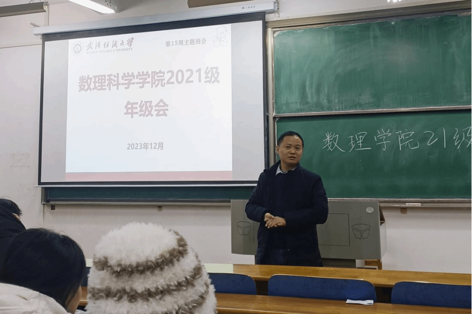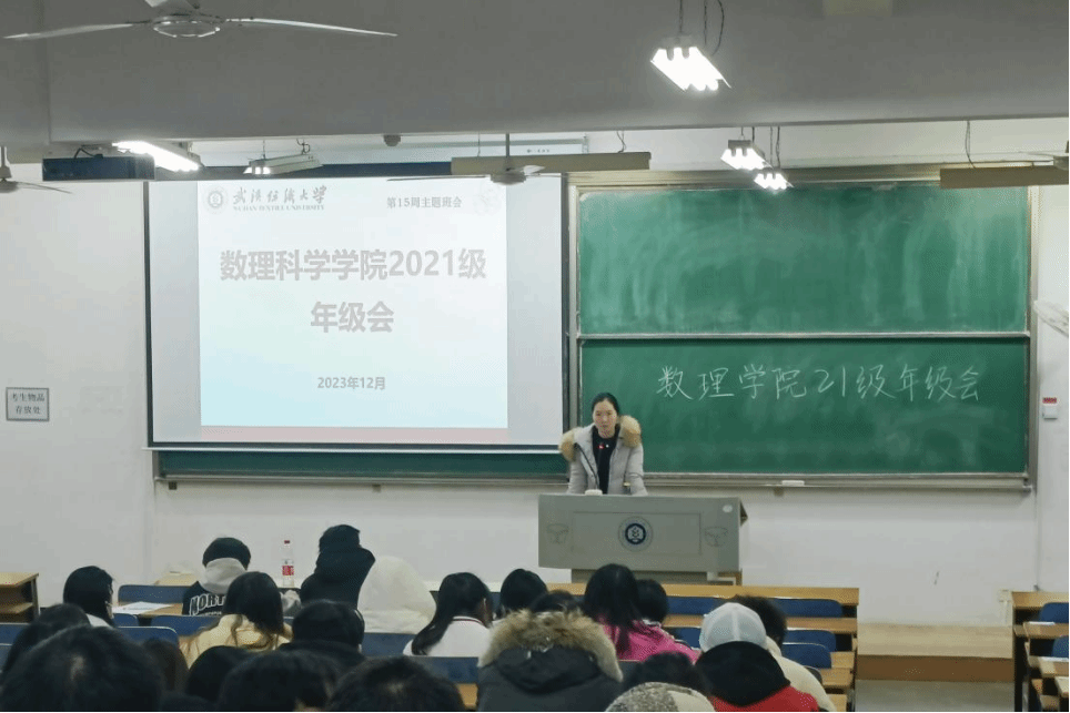 为做好高年级同学的寒假离校、留校相关工作安排,同时就考研、考公、就业等方面向同学们进行动员,12月17日,15vip太阳集团于崇志楼217教室开展以“青春由磨砺而出彩,人生因奋斗而升华”为主题的2021级年级大会。会议由辅导员方媛主持,数理公司党委副书记陈国鹏,21级全体员工参加此次会议。