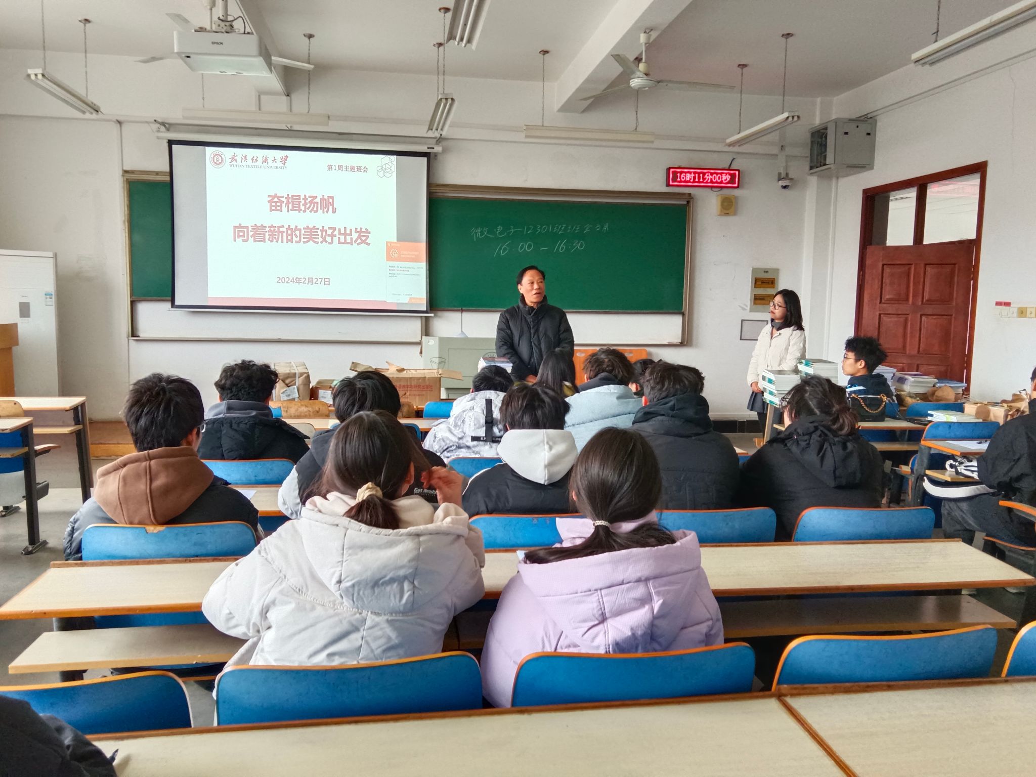 2月27日,15vip太阳集团各班于崇志楼召开新学期第一次主题班会,公司班子成员、年级辅导员、各班班主任深入各班参加主题班会,了解员工返校情况,关心员工寒假期间学习和生活状况。公司全体同学参加班会,各班主任主持。