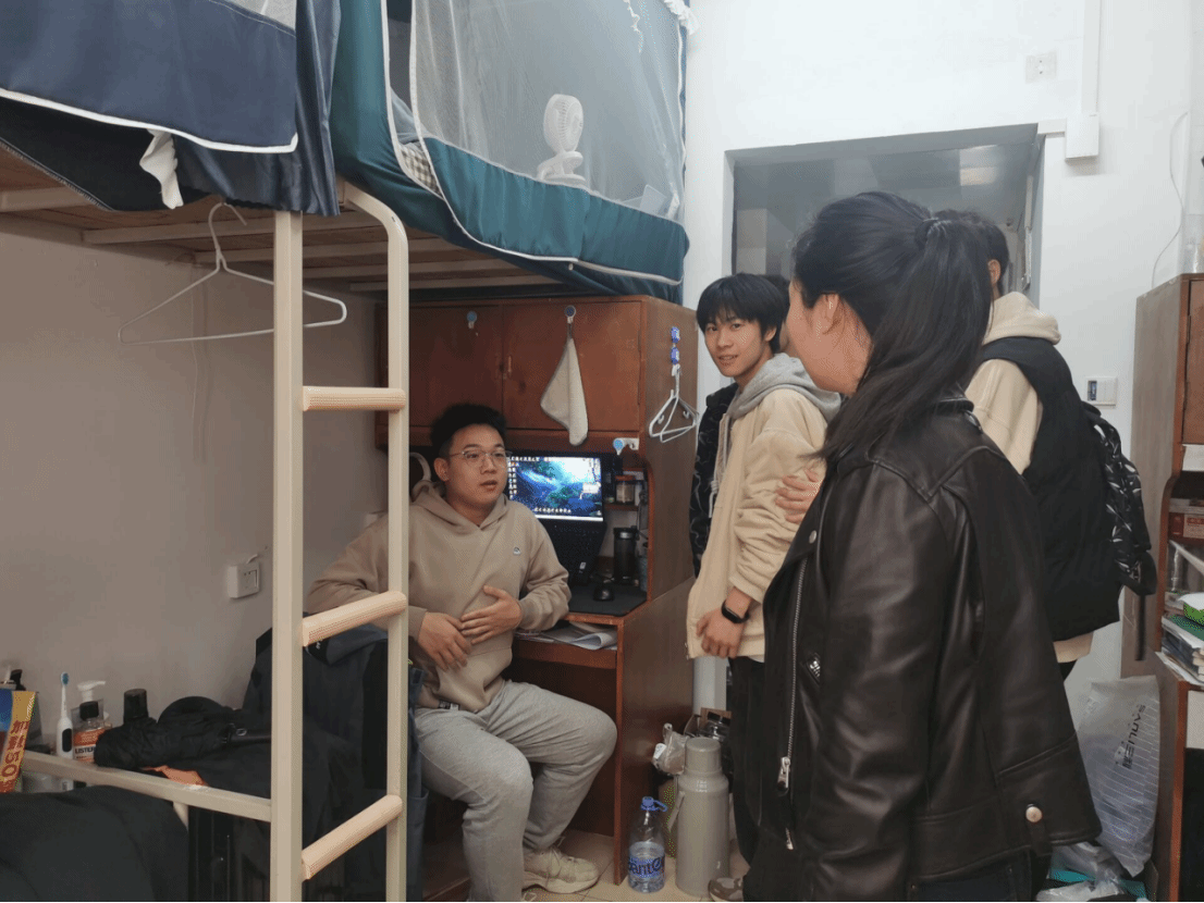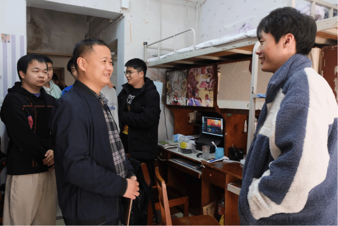 陈国鹏一行对寝室进行了严格的安全隐患排查,强调了宿舍用电安全等问题,重点对宿舍用电安全、卫生问题等进行排查,确保没有员工使用大公率用电器。他们针对员工的生活、学习等情况与员工进行深入交流。查寝过程中,老师们叮嘱大家日常生活中务必注意安全,保持宿舍卫生,增强安全意识,鼓励同学们养成良好的学习生活习惯。同时,陈国鹏重点了解了大四员工考研、就业情况,并为员工的未来人生走向提供宝贵的建议。