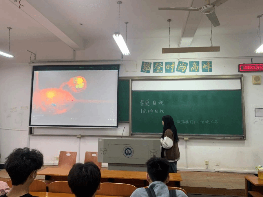 会上,各班团支书介绍了爱自己的心理建设方法和行动清单,如停止自责、耐心呵护自己、接纳自己的缺点等,希望同学们能够通过自我调节和自我关怀,在处在困难、挫折、痛苦、失望等不好的情景中时,对自己消极的状态能够保持开放和友善的态度,能够安抚和关心自己。随后,同学们观看悦纳自己的公益广告,更加切身的体会到了如何善纳自己。