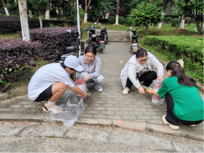 入党积极分子发挥勤俭节约精神,经过近两周的准备,收集了同学们快递包裹内的防撞气泡垫若干箱。活动当天,同学们不畏炎热,经过两个多小时“奋战”,每一个隔离桩上都有了“柔软”的保护,有效降低同学们骑行剐蹭到隔离桩带来的伤害,使阳光校区行驶环境更加安全。活动中,入党积极分子相互协作,有效增强了自我安全意识,也强化了入党积极分子们的担当意识和奉献精神。