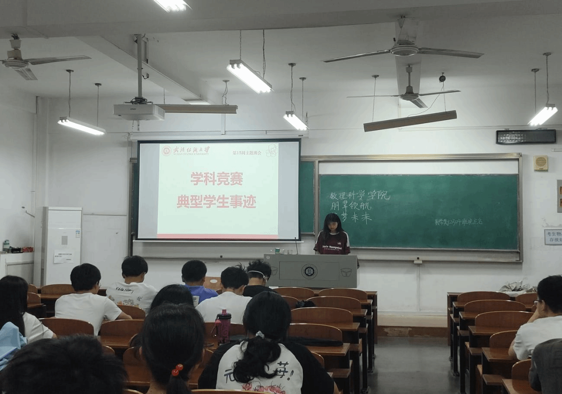 本次主题班会伊始,各班班长带领同学们了解在考研,就业,学科竞赛等方面的典型员工的事迹以及个人成就。希望通过该种方式,激励各位同学在自己的老员工活里,积极向上,合理规划自己的时间,有着明确的目标。向优秀的学长学姐靠拢,向更优秀的自己出发。