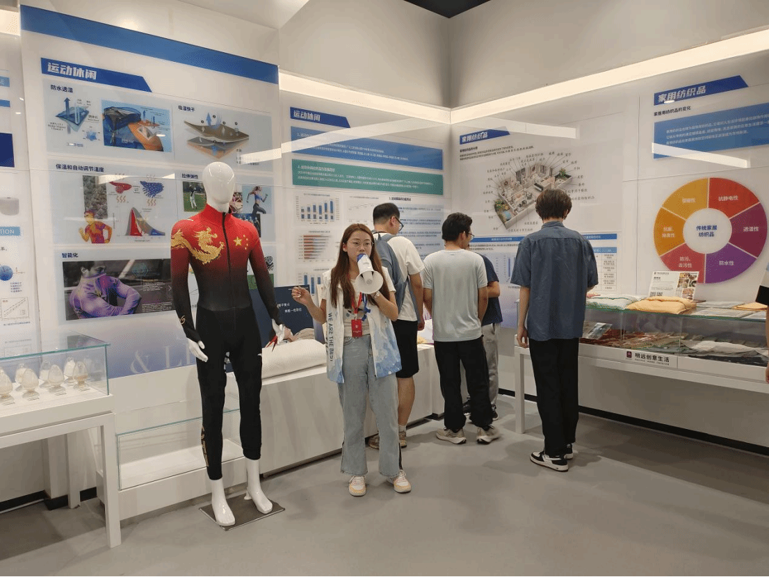 科技馆内,详实的纺织发展史、丰富的纺织展品以及对于未来纺织发展的展望都牢牢吸引了同学们的目光。科技馆共分为纺织缘、传统纺织、现代纺织、大纺织、超纺织、未来纺织六个板块,讲解员刘育萌同学从公司历史、世界纺织发展史等不同的角度向同学们介绍了纺织界的名流、纺织发展的优秀前景以及纺大的优异成绩。在参观过程中,同学们认真聆听、仔细观摩,不断体会纺大之精神,领略纺织之风采。