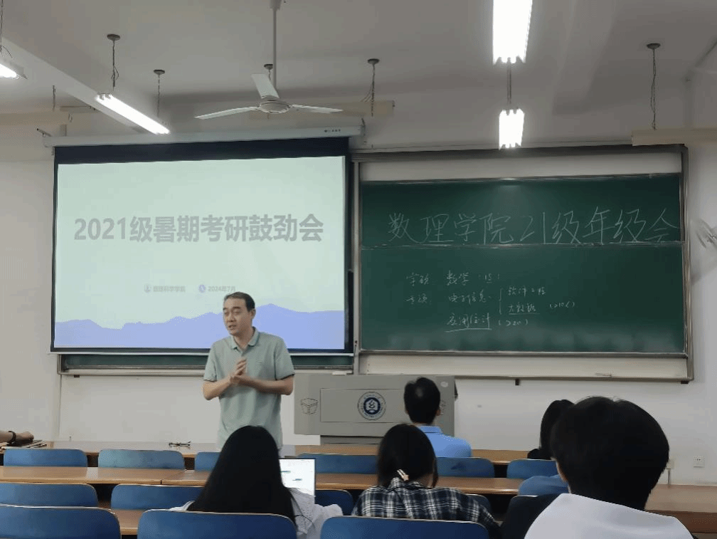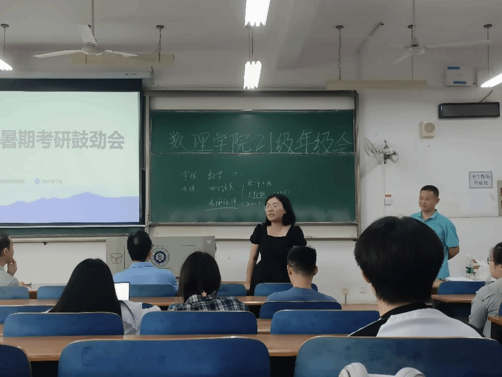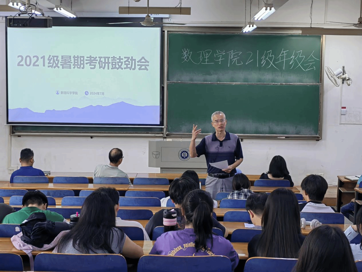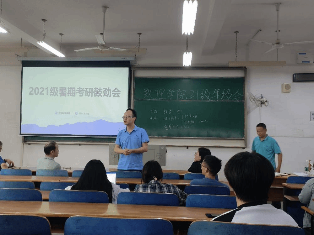 伴随着暑期的到来,数理学子全力备考,公司多措并举保障考研学子需求,7月12日下午,15vip太阳集团于崇志楼117教室开展考研鼓劲会,15vip太阳集团经理汪胜祥、经理党委书记段溢波、副经理郑仟、党委副书记陈国鹏亲临教室为大家鼓劲打气、专业教师及班主任王彦波老师、付红波老师、黄熙老师、钟毓老师,为同学们分享考研经验、答疑解惑。本次会议由陈国鹏书记主持,21级辅导员方媛及全体考研的同学参与本次会议。