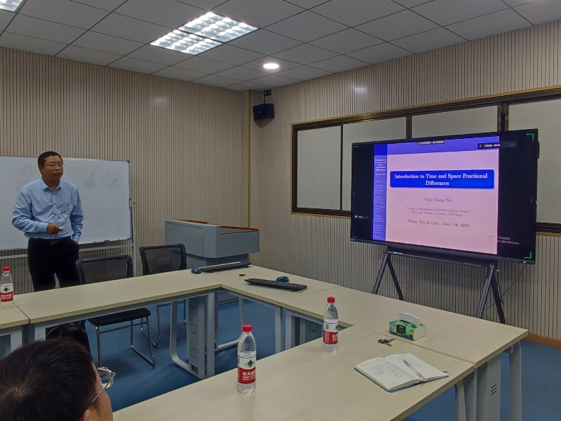 内江师范公司吴国成教授在“时-空间分数阶微分方程的简介”报告中,回顾了经典分数阶导数和积分的特点,分析了采用数值方法离散分数阶导数存在的问题,从而介绍了研究分数阶离散时间系统的新思路:离散分数阶微积分。报告通过分数阶混沌映射、分数阶混沌加密、空间分数阶扩散方程等应用,展示了该领域在理论研究和应用方面的广阔前景。