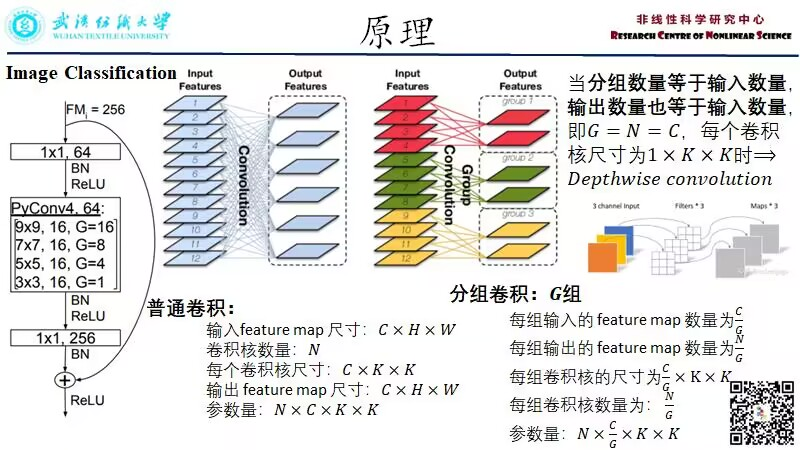 詹晨美:本次汇报了一篇名为《Pyramidal Convolution: Rethinking Convolutional Neural Networks for Visual Recognition》的文献,在文章中,作者提出了金字塔卷积(PyConv),它能够在多尺度的卷积核上处理输入的图像。PyConv包含一个卷积核金字塔,每一层级是大小和深度都不同的卷积核,从而可以捕获场景中不同级别的细节,另外PyConv不会增加计算成本和参数,是十分高效的,而且PyConv十分灵活,具有可扩展性。除此之外,作者还提出了两种用于图像分类的网络,性能卓越,并且在参数数量和计算成本方面表现优异。一种语义分割的新框架,可以捕获局部的、全局的不同级别的语义信息提出了基于金字塔卷积的用于目标检测和视频分类的网络框架。