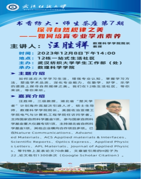 最后,汪胜祥寄语同学们是要立善求真。我们的校训“崇真尚美”正是阐释了这一点,希望做一个心地仁爱、求善求真的博雅之士。
