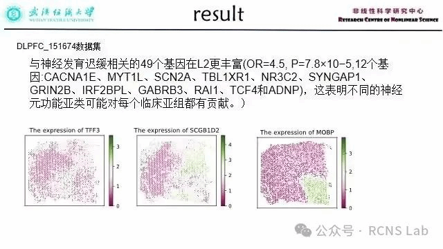 孙睿:本次汇报了关于空间可变基因方向的工作,着重汇报了关于空间表达数据的模拟数据的生成,模拟数据结果的比较。从已有的文献中对基因的空间表达模式分析进行了列举,主要比较了两种不同的额表达模式之间的差异。展示了我们的模型对于模拟数据的判定结果,并对结果进行了解释分析。