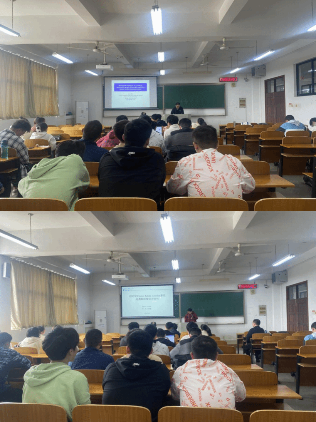 翟利凯:汇报的题目是《Asymptotic behavior of a class of stochastic partial differential equations driven by Non-Gaussian》Lévy过程是一类重要的具有独立平稳增量的非高斯过程, 其样本路径随机连续并逐点右连续左极限, 且在有限时间内至多有可数个跳越点。特别地,稳定Lévy过程可视为高斯过程Brownian运动的推广。本文研究当时,由稳定的Lévy过程驱动的随机偏微分方程的解的收敛行为,利用Lévy过程的一些性质和定理,结合必要的假设条件,在的极限情形下进行了详尽的探讨。研究方法主要基于Aldous准则,成功地证明在适当的条件下概率测度族的胎紧性,从而保证了由稳定Lévy过程驱动的随机偏微分方程的解在弱意义下收敛于由Wiener过程驱动的随机发展方程的解,且这一收敛现象在Hilbert空间中得以确立。这一研究为深入理解在在无穷维空间中非高斯噪声中驱动的随机偏微分方程的理论发展带来积极意义,并在数学领域中具有广泛的应用潜力。