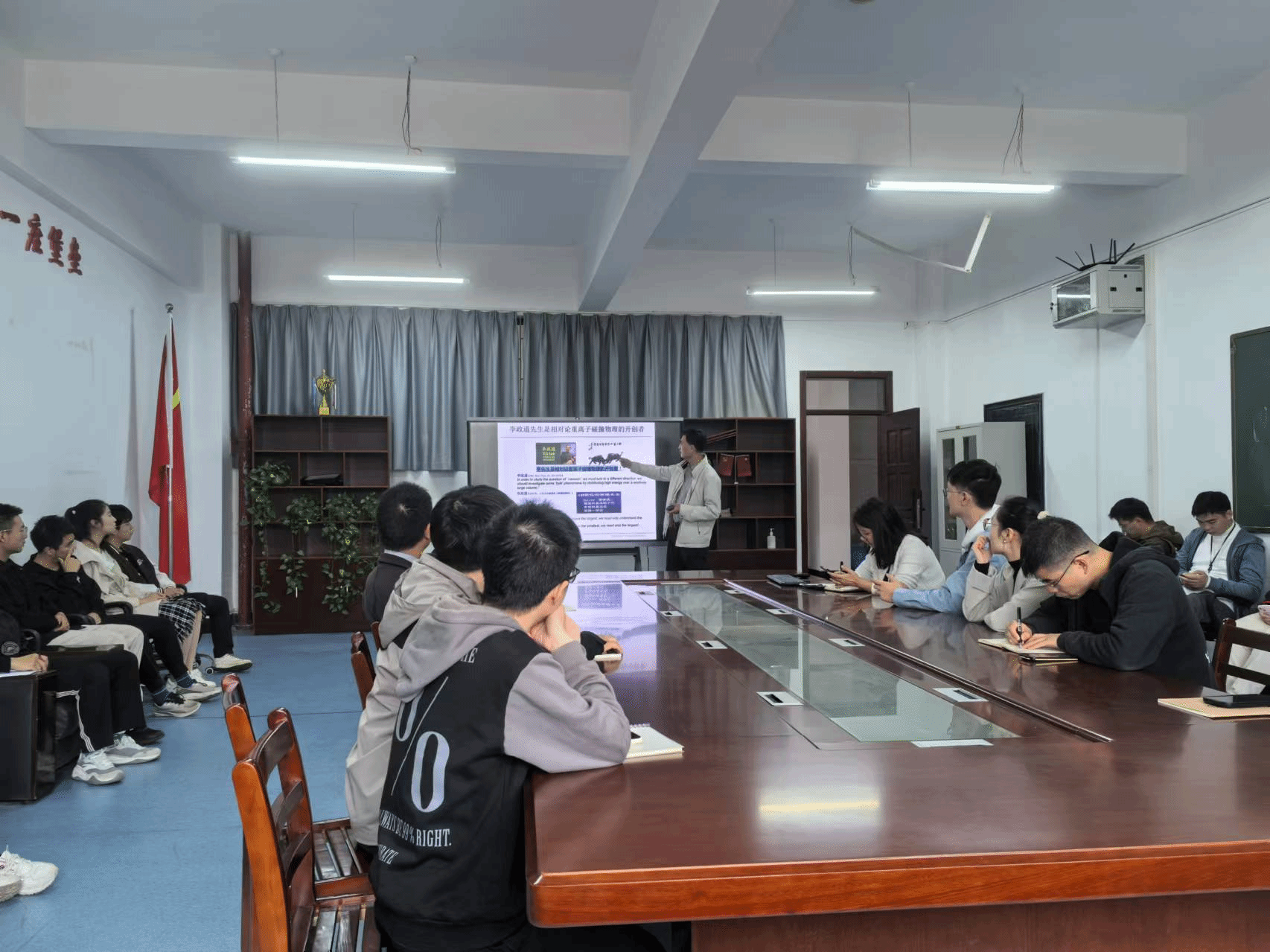 在报告结束后,马国亮研究员与公司参会师生进行了深入的交流与互动,针对青年教师和员工提出的各种问题,他都给予了耐心而详尽的解答。此次论坛不仅加深了公司师生对国内外高能核物理理论与实验研究现状的理解,也为公司未来拓展更多学术合作与交流提供了宝贵的契机。