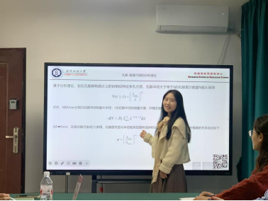 吴仔航汇报了自己阶段性研究成果,即具有粗壁裂缝和变截面孔道的双孔隙介质渗透率预测的多重分形模型,A multifractal model for predicting the permeability of dualporosity media with rough-walled fractures and variable cross-sectional pore channels.建立了考虑孔隙通道变截面和裂缝表面粗糙度的孔隙-裂缝渗透率模型,并给出了以绝对粗糙度和相对粗糙度定义的两种解析式渗透率表达式。